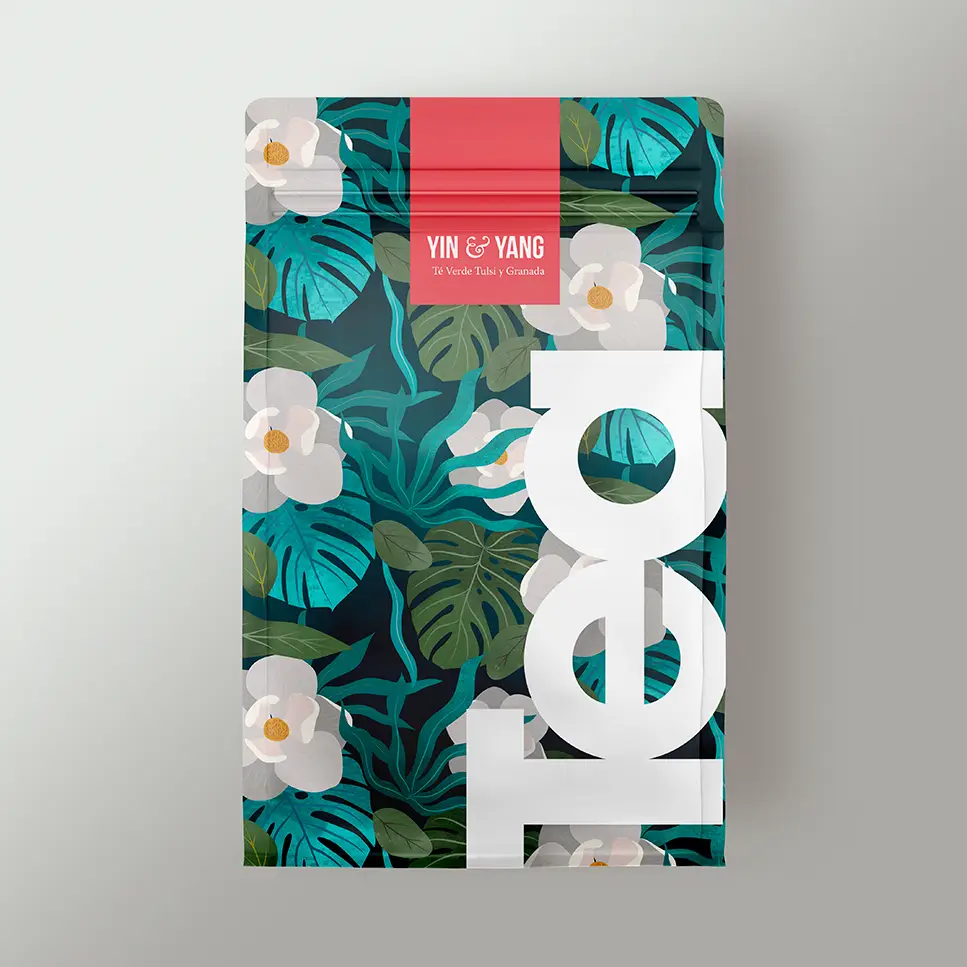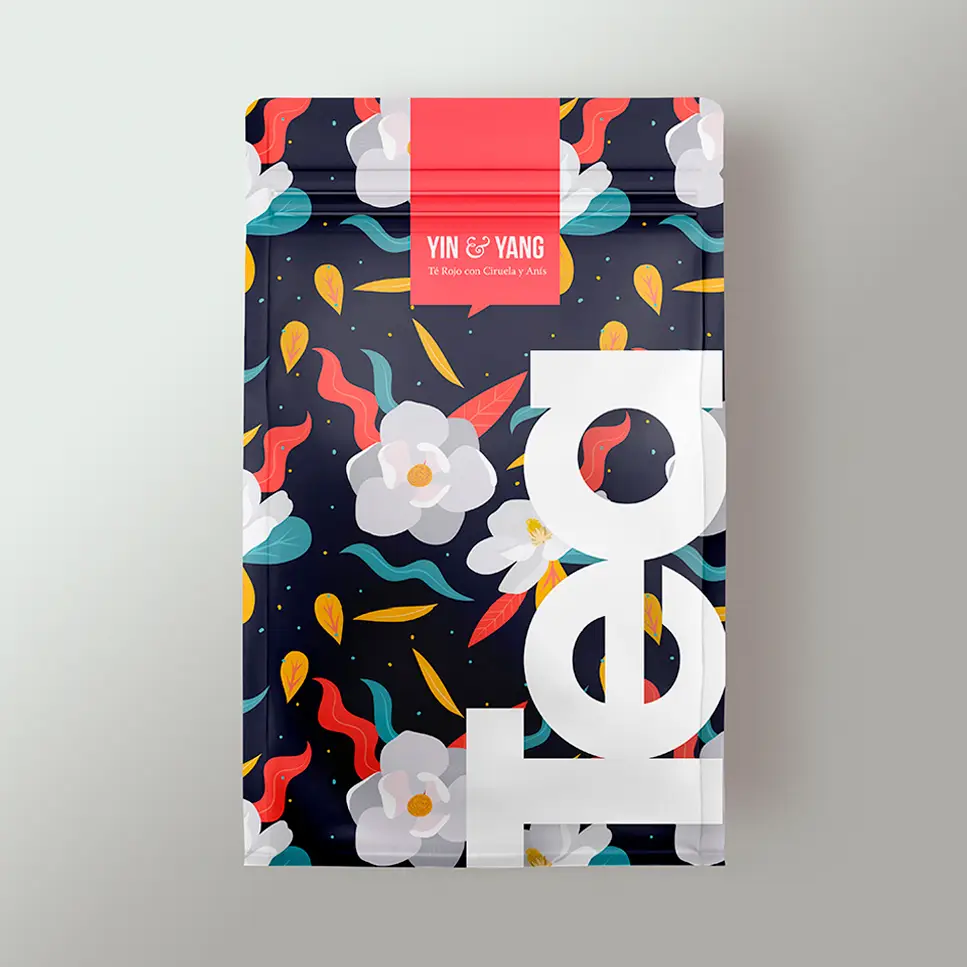 Desarrollamos el packaging para la marca de té orgánico Yin & Yang, utilizando un pattern florido como base. Cada variedad de té se identificó con un color único, siguiendo la idea del cliente de diferenciar visualmente las gamas de productos a través de un diseño armónico.